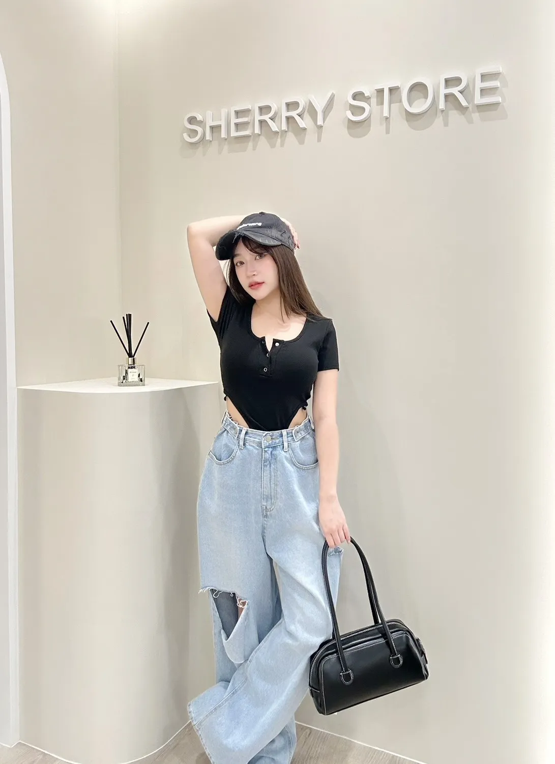 𝒔𝒉𝒆𝒓𝒓𝒚𝒔𝒕𝒐𝒓𝒆歐美風范開衩假連體衣PE9441