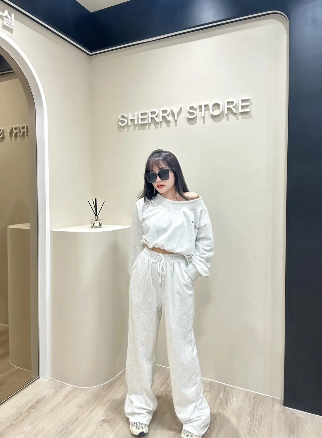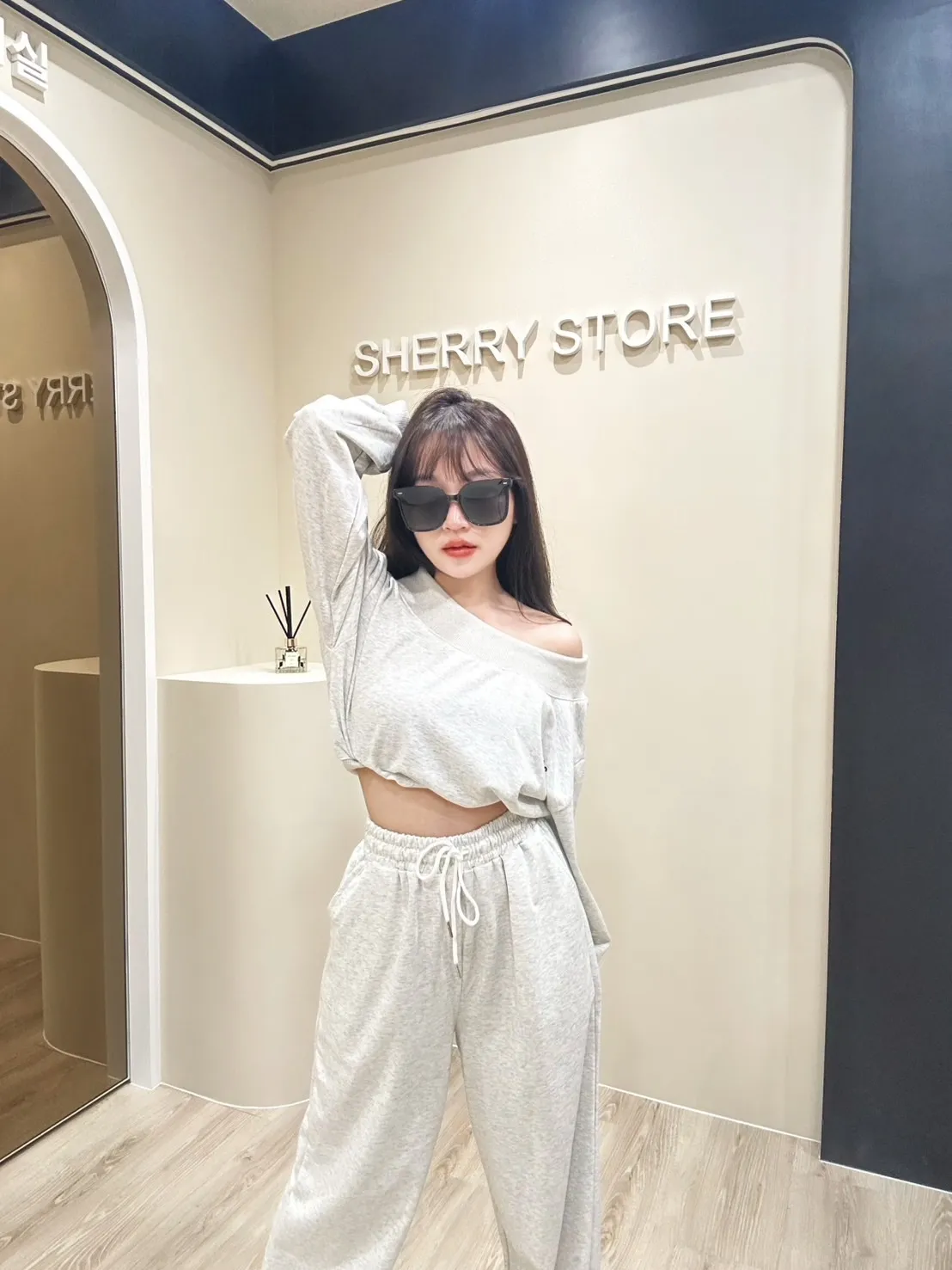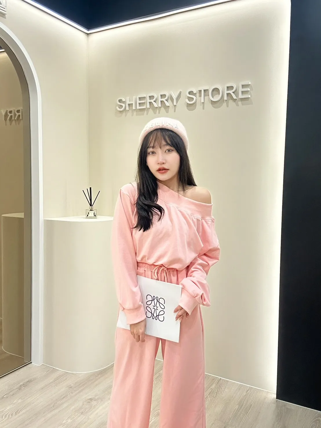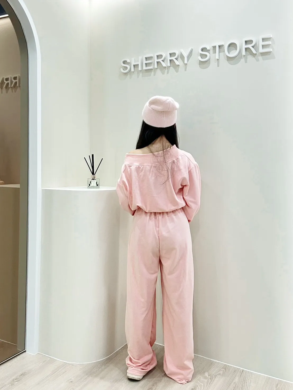 𝒔𝒉𝒆𝒓𝒓𝒚𝒔𝒕𝒐𝒓英國街頭慵懶風休閒一字領兩件套PE95