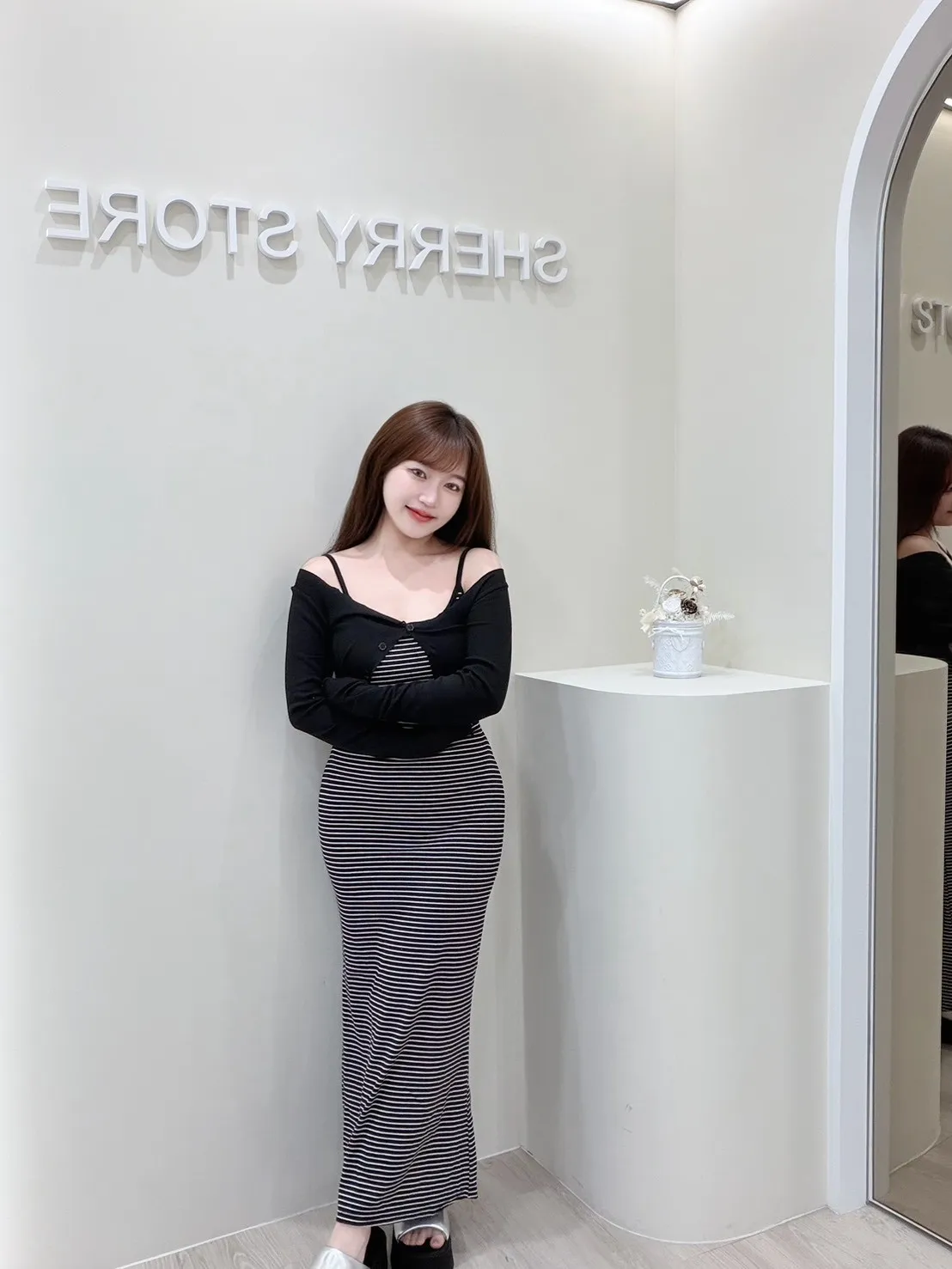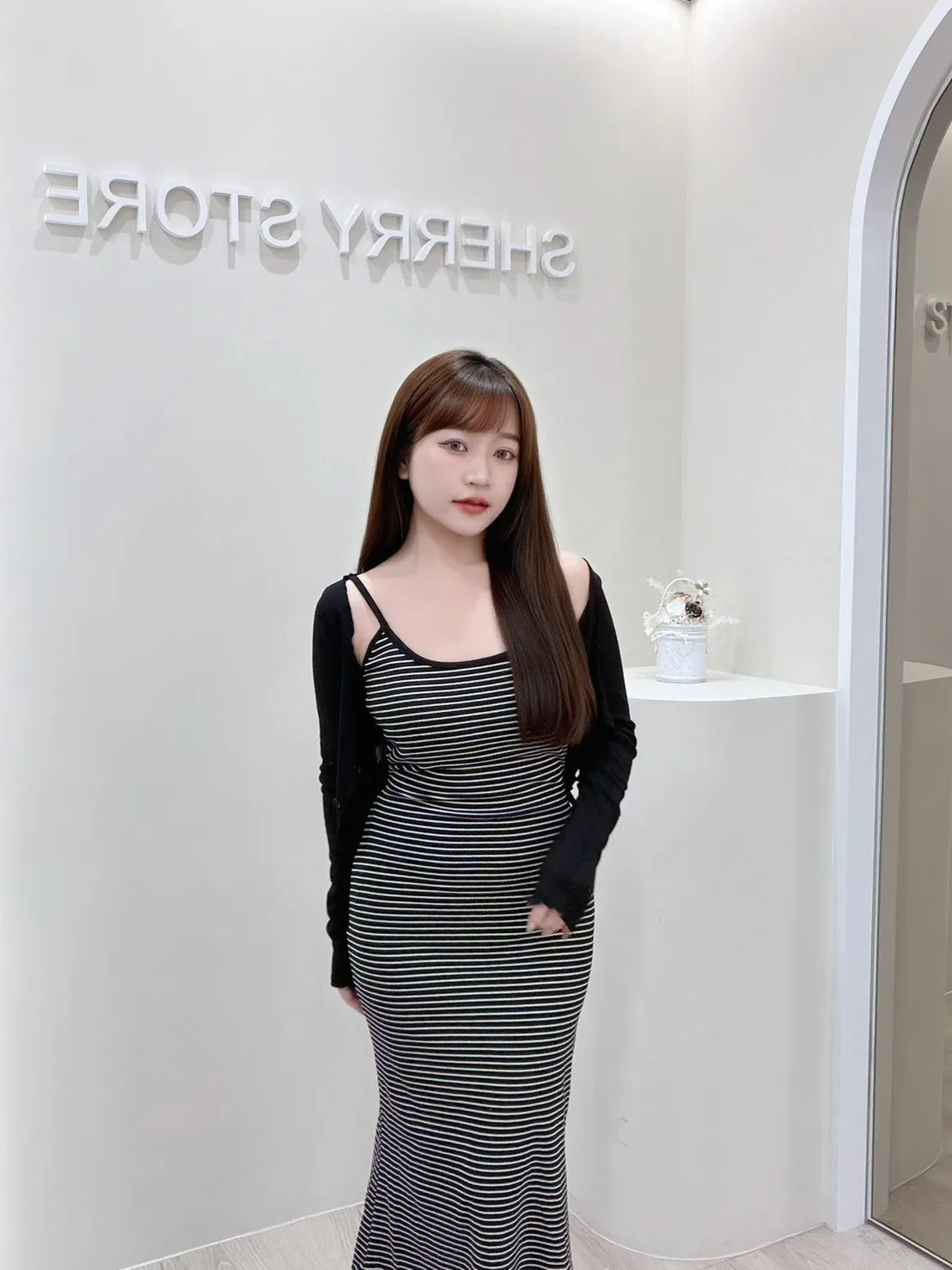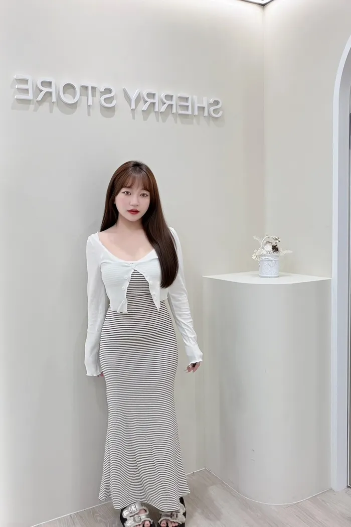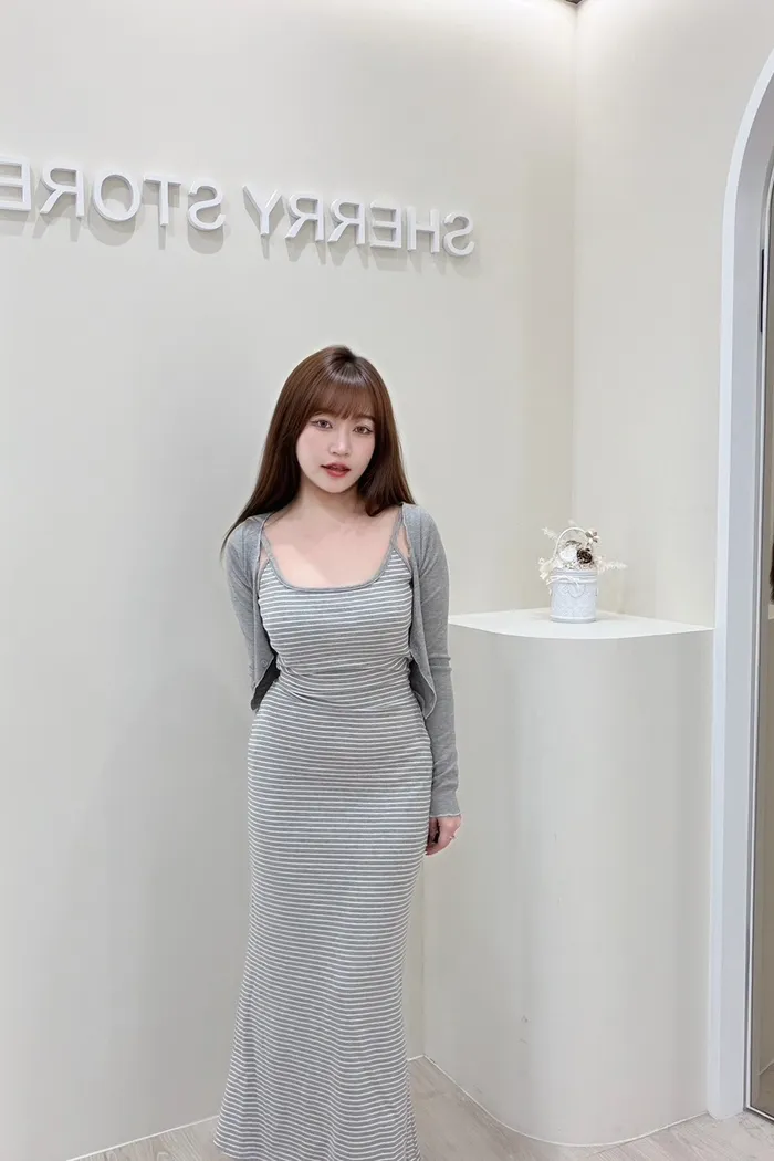 𝒔𝒉𝒆𝒓𝒓𝒚𝒔𝒕𝒐𝒓𝒆氣質仙女必帶款美背條紋連身裙兩件套PE9562