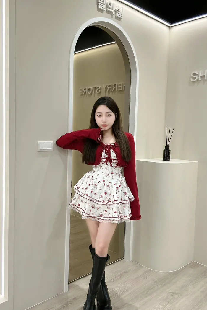 𝒔𝒉𝒆𝒓𝒓𝒚𝒔𝒕𝒐𝒓𝒆早秋款甜妹純欲碎花澎澎裙三件套R1291