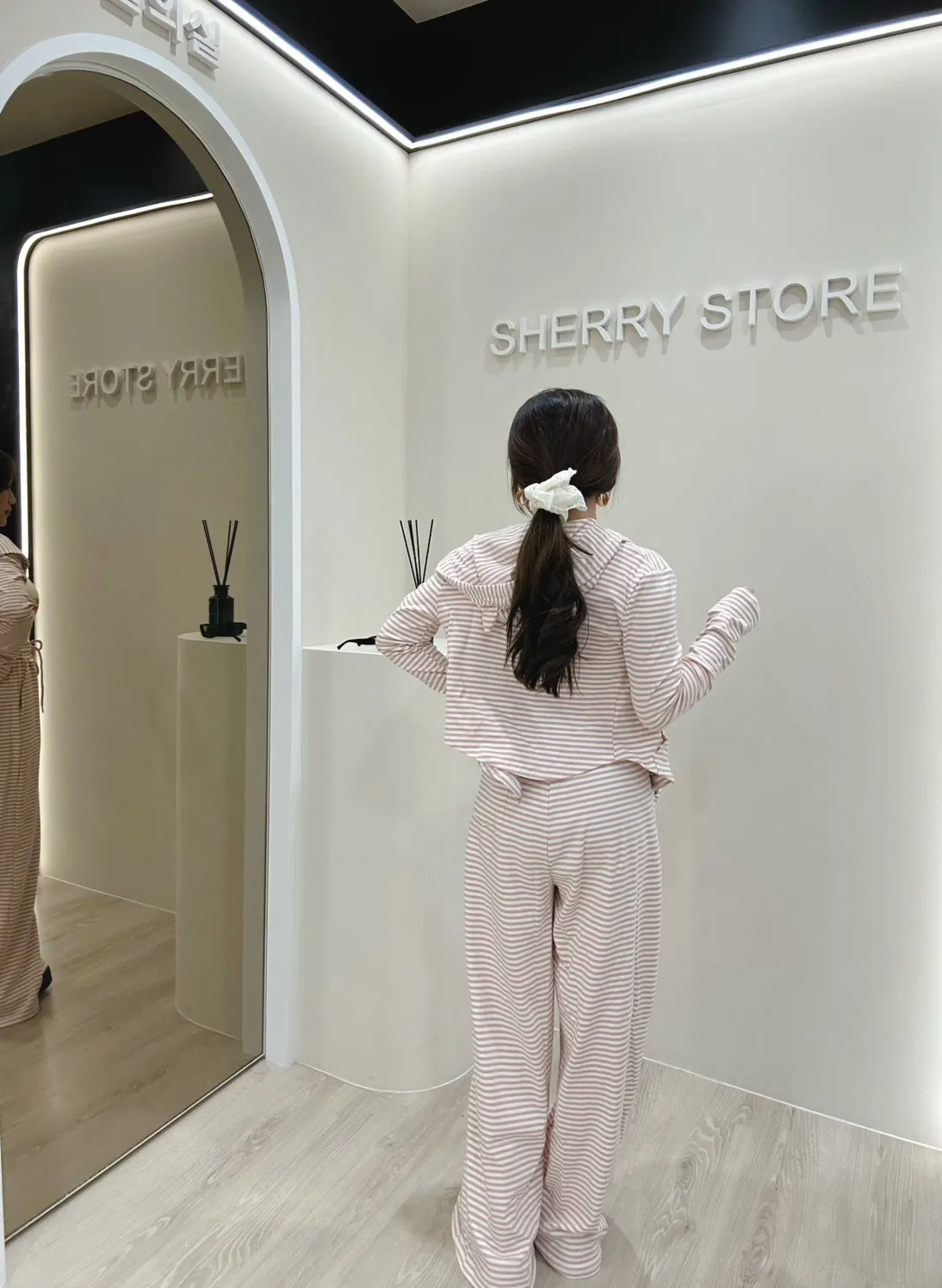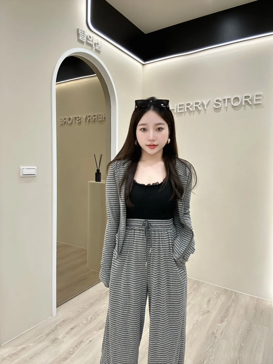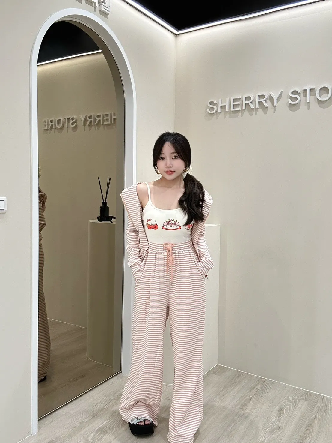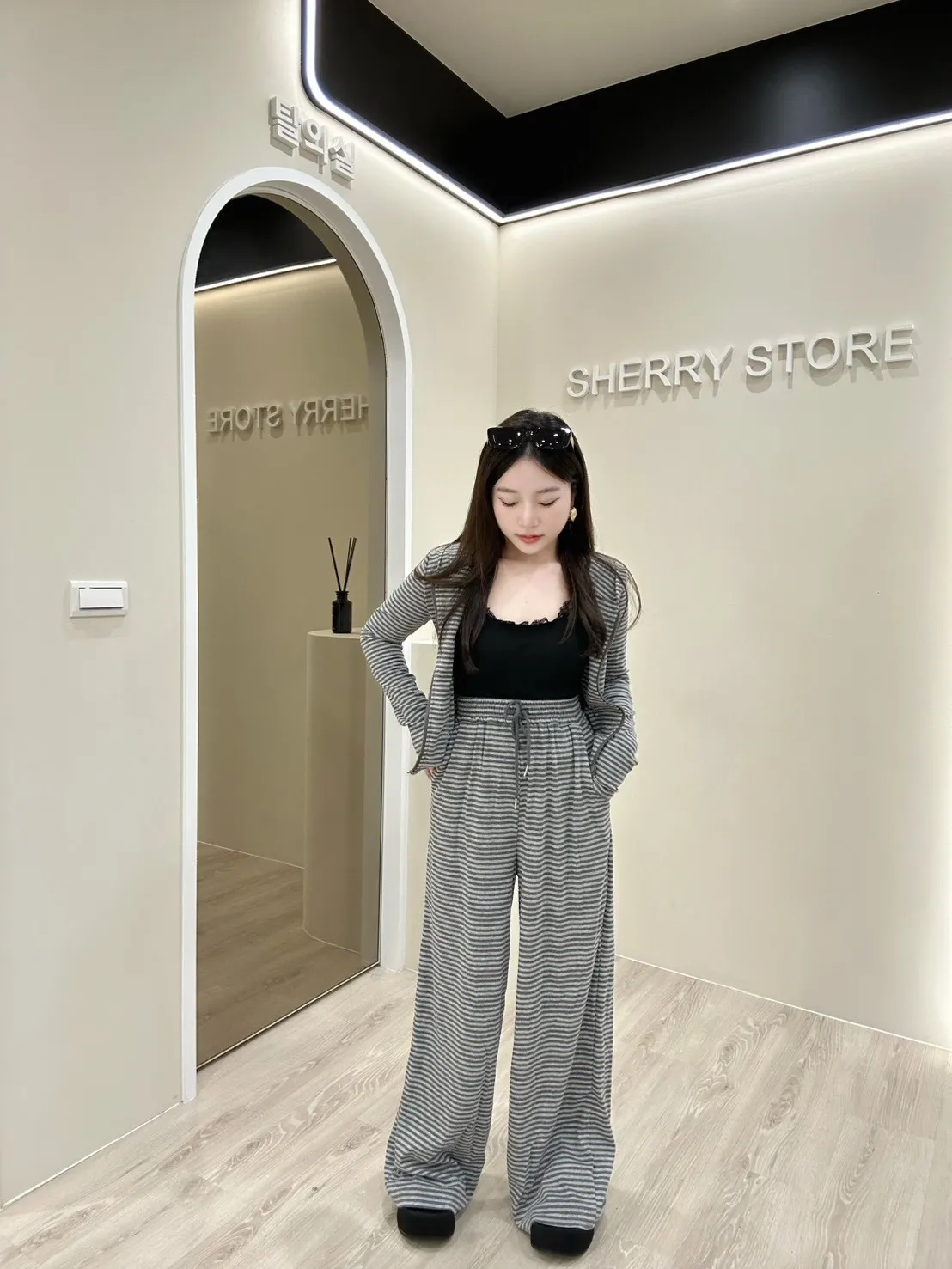 𝒔𝒉𝒆𝒓𝒓𝒚𝒔𝒕𝒐𝒓𝒆軟妹休閒感oversize條紋三件套裝褲R1366