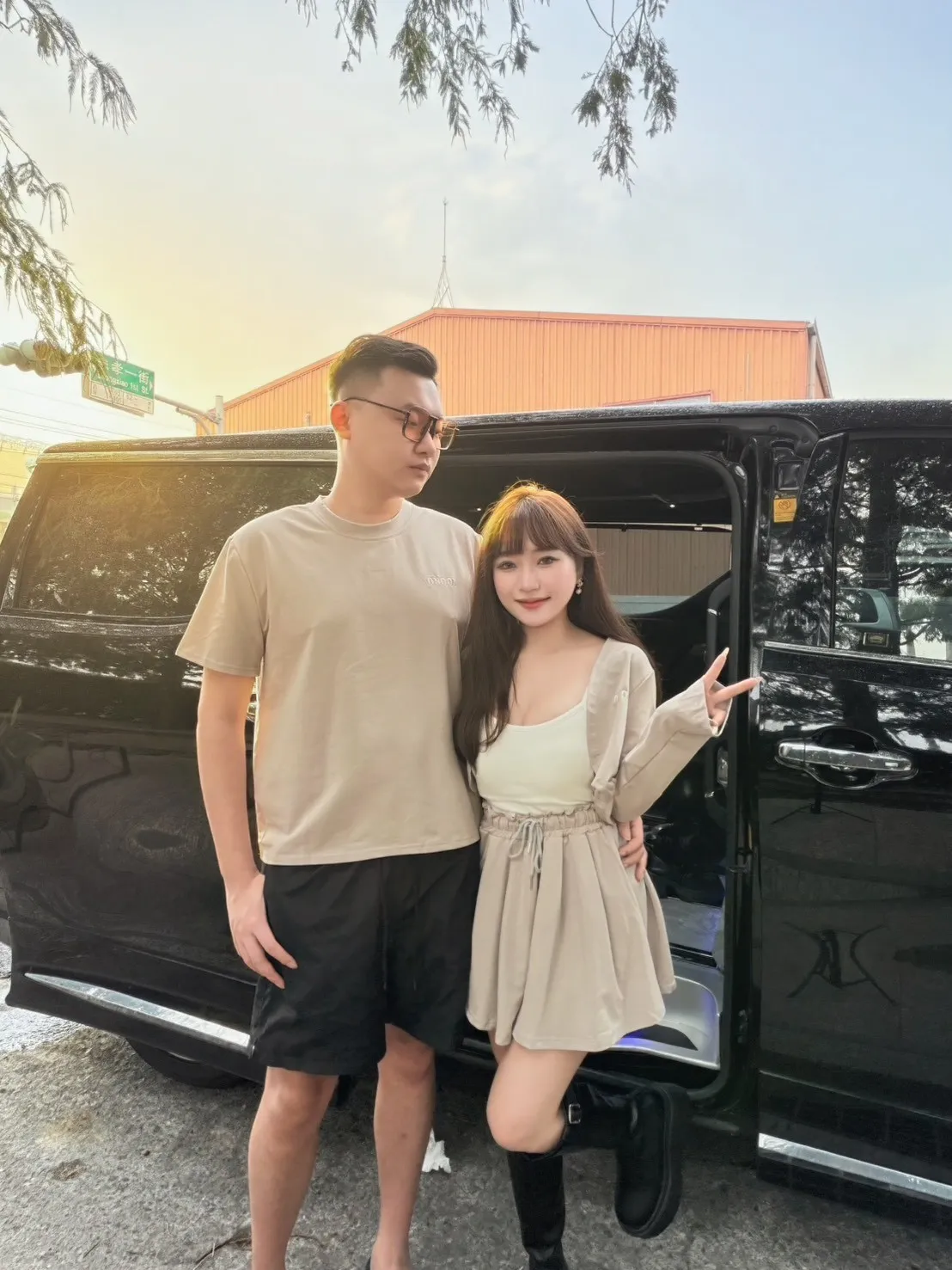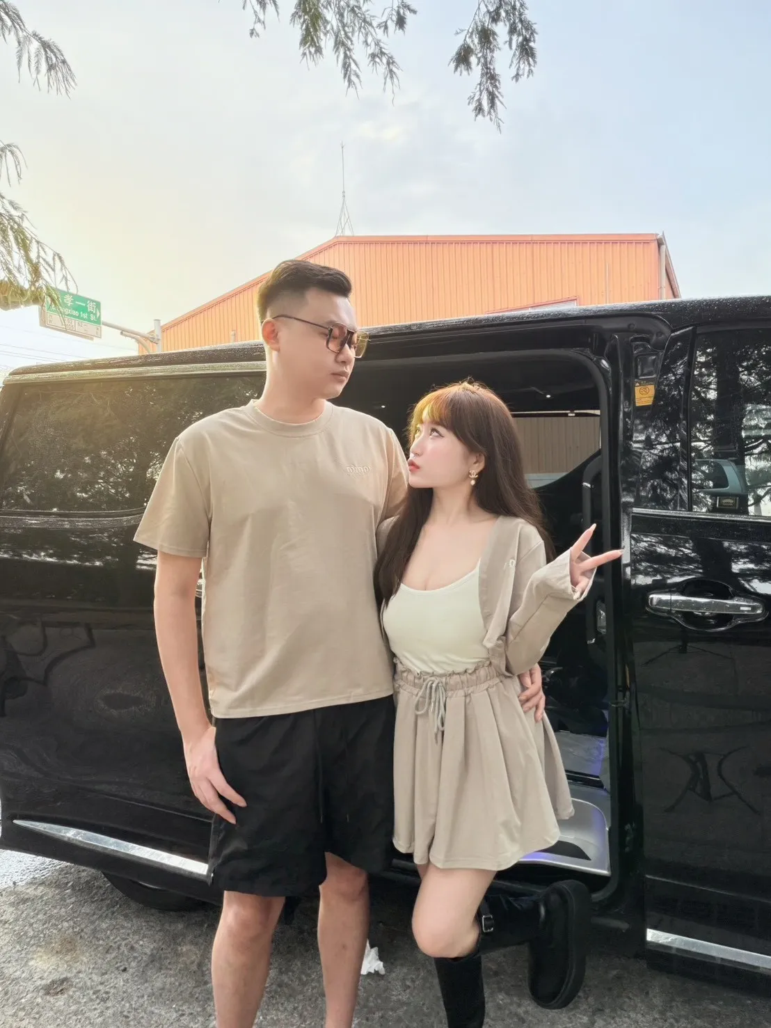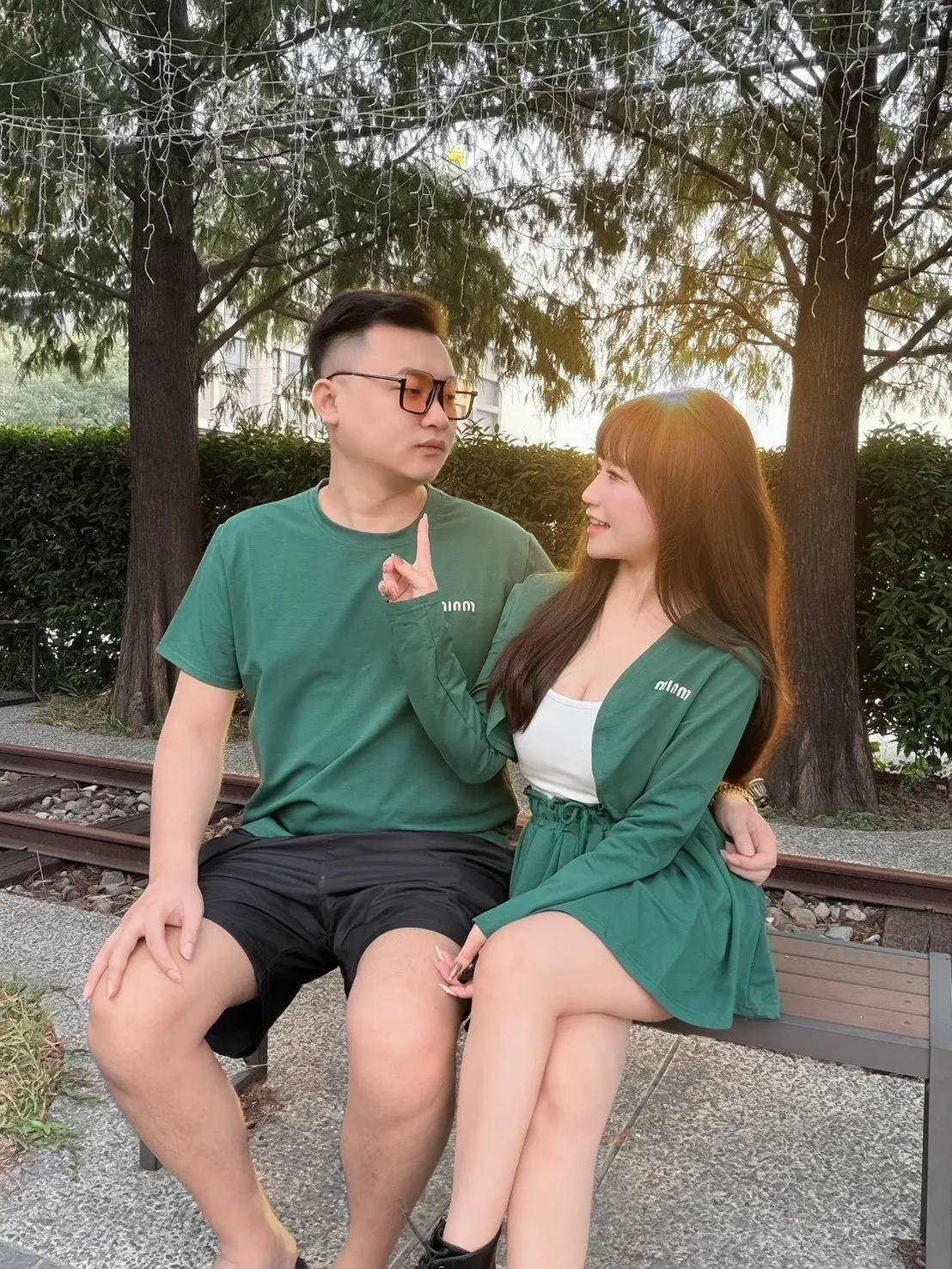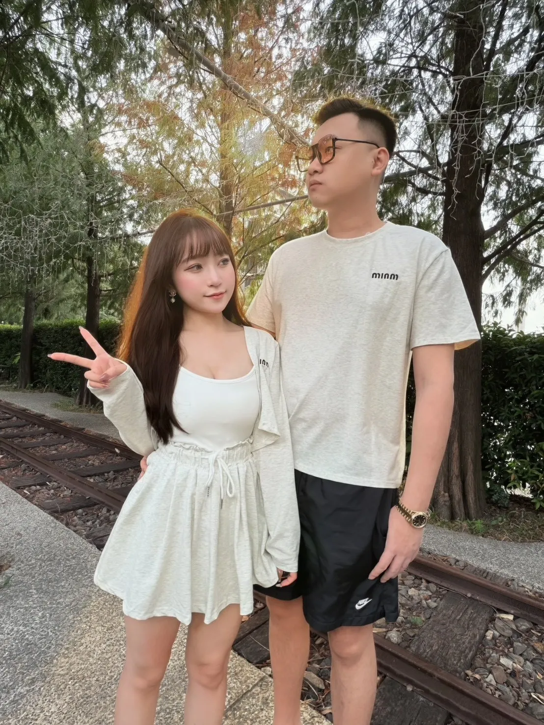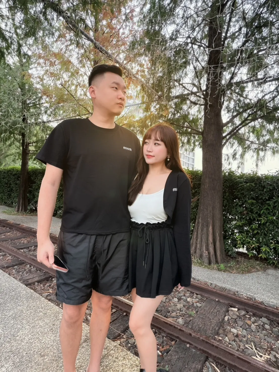 𝒔𝒉𝒆𝒓𝒓𝒚𝒔𝒕𝒐𝒓𝒆獨家款自訂情侶套裝miu系減齡套裝裙女款+圓領素面上衣男款SH010