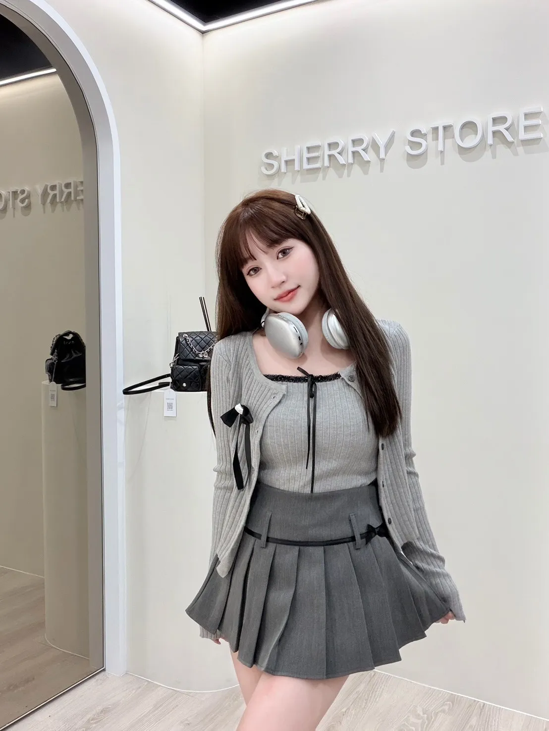 𝒔𝒉𝒆𝒓𝒓𝒚𝒔𝒕𝒐𝒓𝒆秋風減齡穿搭!小姐姐學院風針織三件套裙U6852