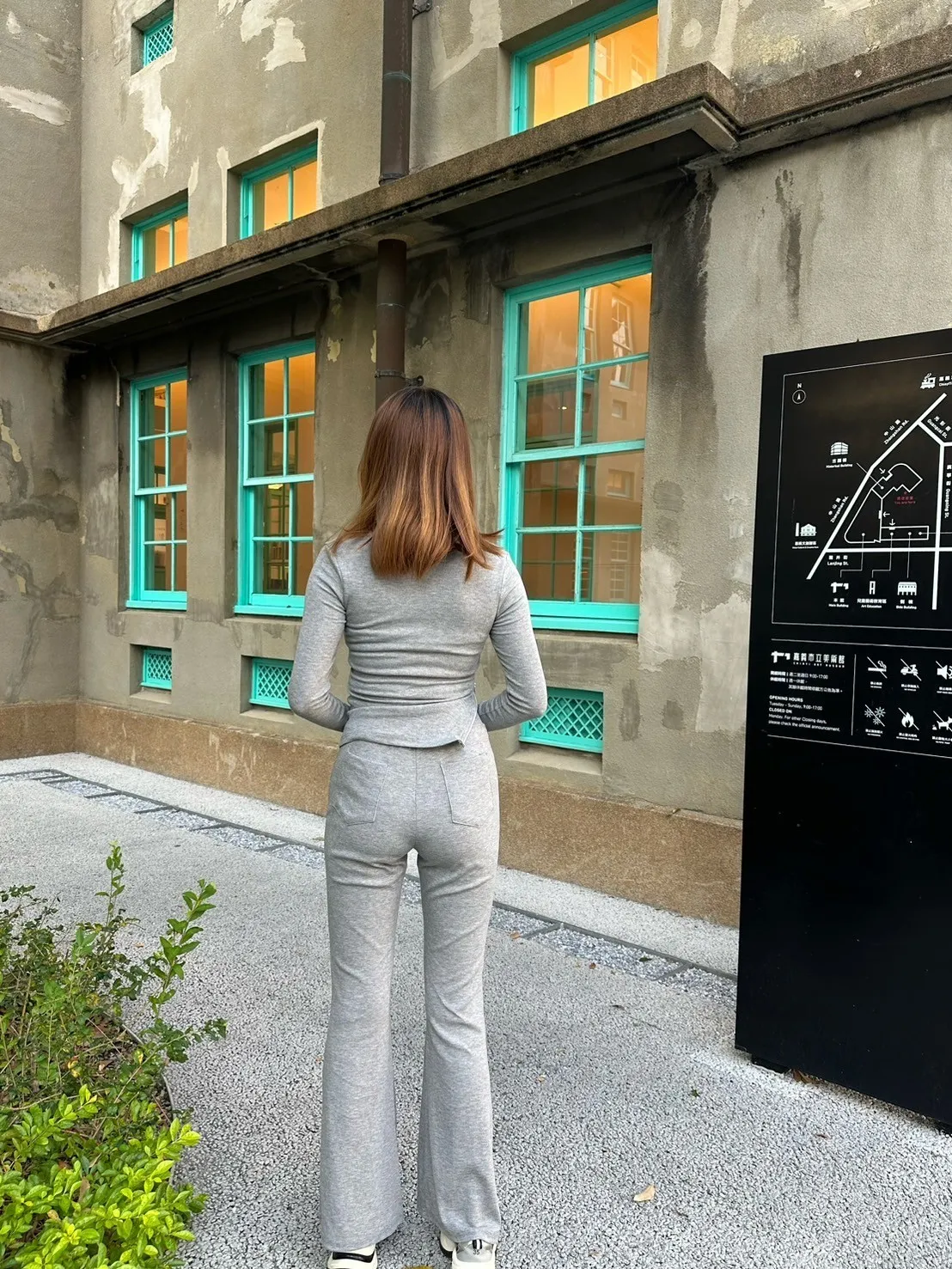 下身微喇叭褲 超顯腿長 黑色穿上身 只有瘦可以形容💯