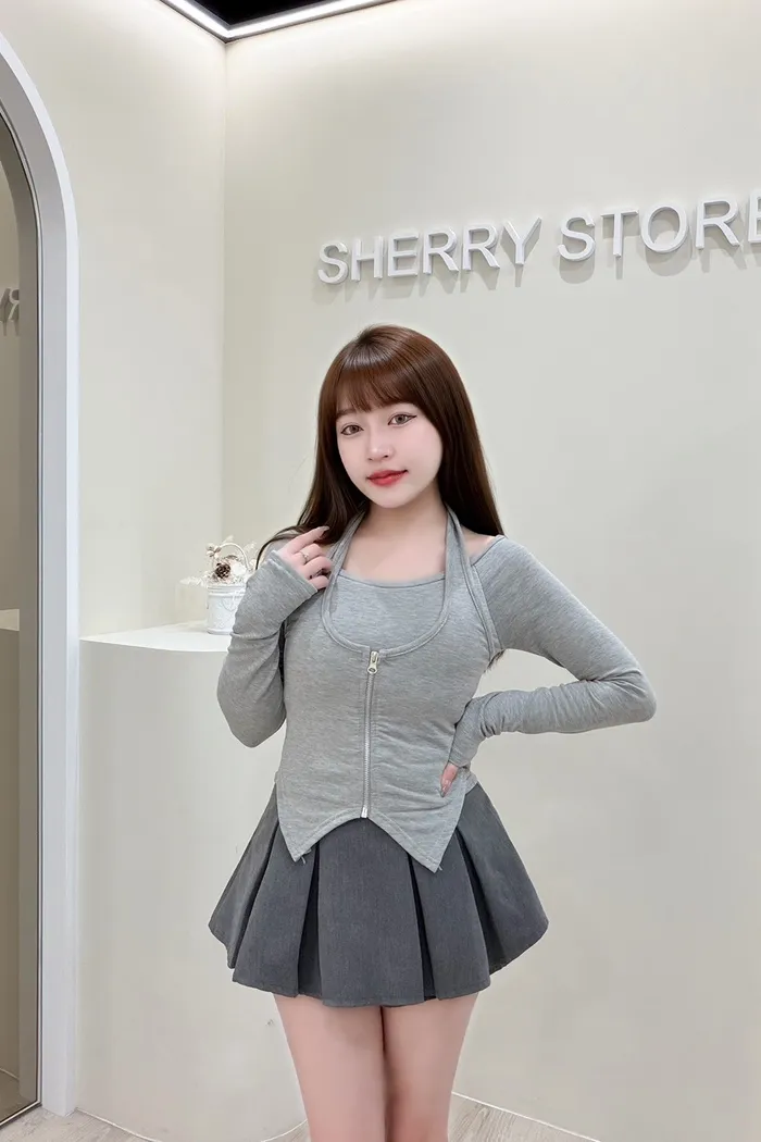 𝒔𝒉𝒆𝒓𝒓𝒚𝒔𝒕𝒐𝒓𝒆甜辣掛脖內膜毛假兩件式上衣W5687